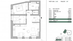 Dávame do pozornosti 3-izbový byt B1.8, ktorý sa nachádza na 1. poschodí, s celkovou plochou 67,52m2. Disponuje veľkorysým priestorom obývacej miestnosti s kuchyňou, dvomi spálňami, samostatným WC a kúpeľňou. V celkovej ploche je zarátaná aj kobka vo veľkosti 2,14m2.