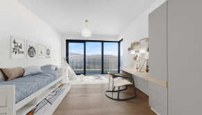 Orientácia bytu je na severozápad a tak si môžete vychutnať západ slnka a výhľad na panorámu mesta.