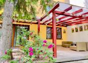 Spodné podlažie = kuchyňa, obývačka s krbom, spálňa s kúpeľňou a šatníkom, samostatné WC, vstup na dvor/ zastrešenú terasu s posedením