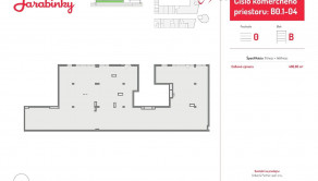 Veľký nebytový priestor s výmerou 496 m2 sa nachádza na prízemí projektu Jarabinky. Obchodný priestor má tri vstupy z jednosmernej ulice, ktorá spája Mlynské Nivy a Jarabinkovú ulicu. Ponúkame ho v stave holopriestor so samostatným WC a umývadlom, prípojnými bodmi vody, odpadu, elektrickej energie a vykurovania a je pripravený na úpravu podľa potrieb budúceho vlastníka. Svetlá výška priestoru je 3000mm. Parkovanie pre klientov je zabezpečené na platenom parkovisku priamo v bezprostrednej blizkosti priestoru. V samotnom projekte Jarabinky sa nachádza cca 400 bytov a 25 obchodných priestorov.