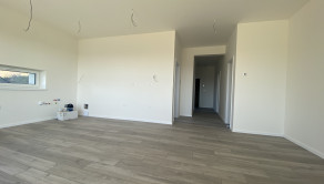 Dispozíciu bytu tvorí: vstupná chodba, samostatný šatník či komora, priestranná obývacia izba spojená s kuchynskou časťou a s výstupom na terasu do predzáhradky, samostatná toaleta, kúpeľňa s umývadlom a vaňou dve samostatné spálne.