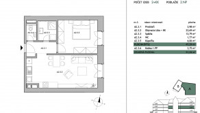Dávame do pozornosti 2-izbový byt A2.3, ktorý sa nachádza na 2. poschodí , s celkovou plochou 51,04m2. Praktický bytík so samostatnou spálňou a nepriechodnou obývačkou s kuchynskýám kútom, ďalším bonusom je samostatná toaleta. V celkovej ploche je zarátaná aj kobka vo veľkosti 3,75m2.