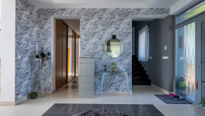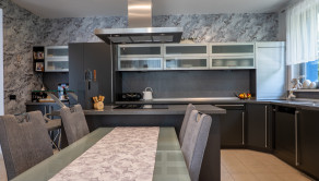 Dispozícia – vstupná predsieň, kuchyňa, jedáleň, 2 obývacie izby, hosťovská izba, práčovňa, technická miestnosť, wellness priestor, chodba so vstavaním šatníkom