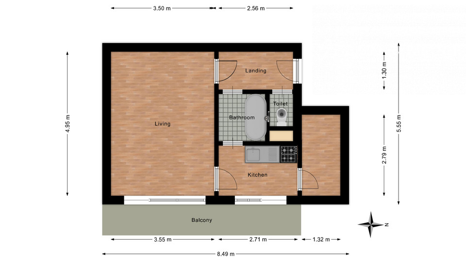 Predsieň, kúpeľňa so sprchovým kútom, toaleta, izba, samostatná kuchyňa, šatník, veľká loggia pozdĺž celého bytu.