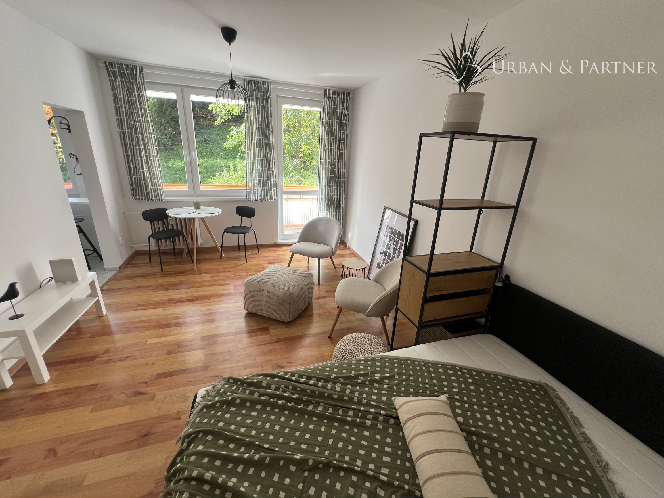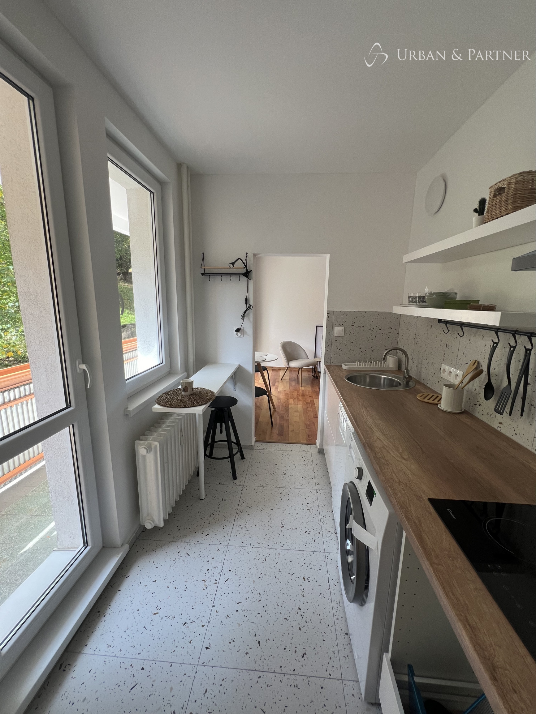 URBAN&PARTNER ponúka na prenájom kompletne zrekonštruovaný, priestranný a svetlý 1 izbový byt so samostatnou kuchyňou, šatníkom a veľkou loggiou. Je veľmi tichý a poskytuje maximálne súkromie s výhľadom na zeleň.