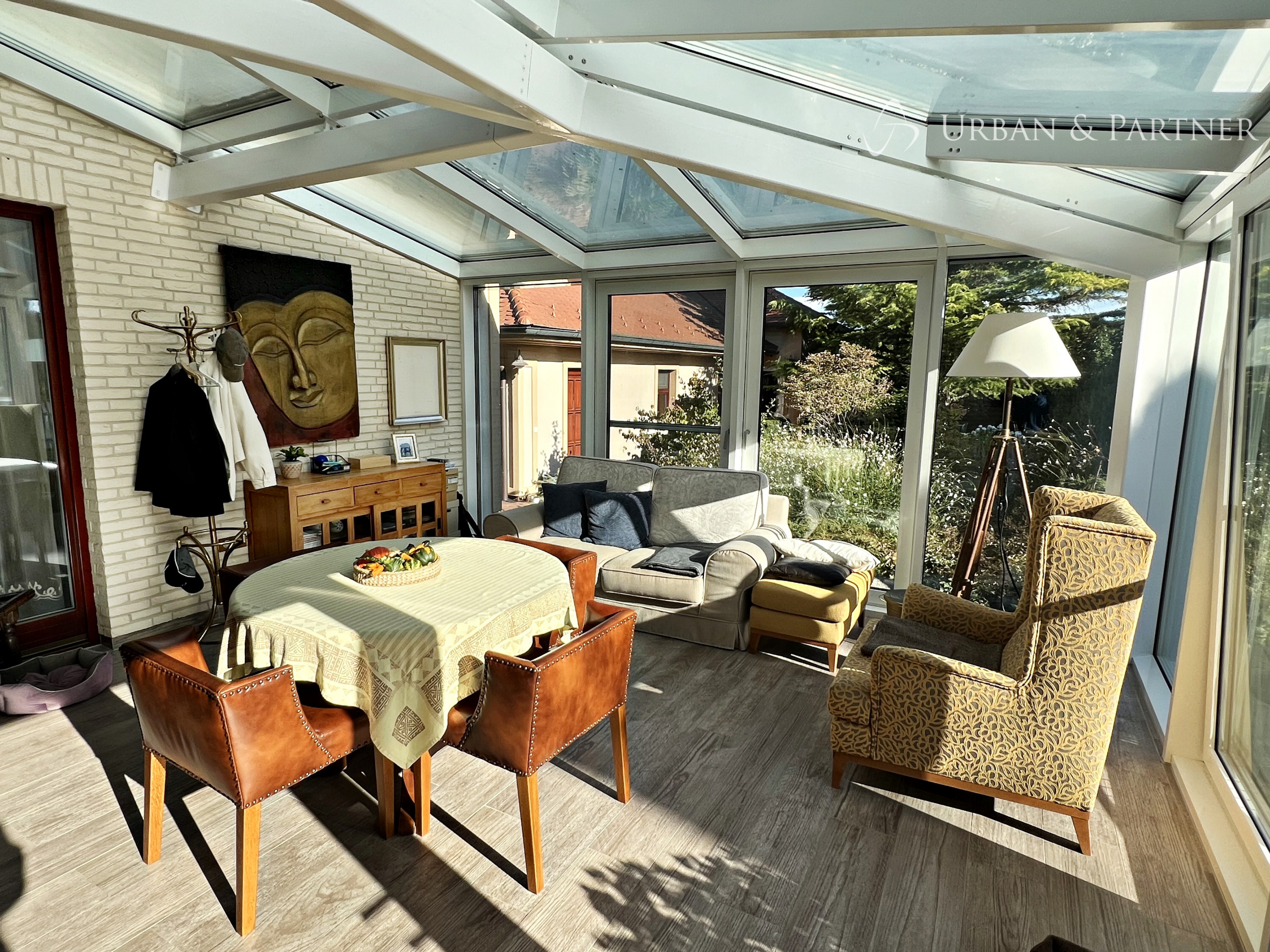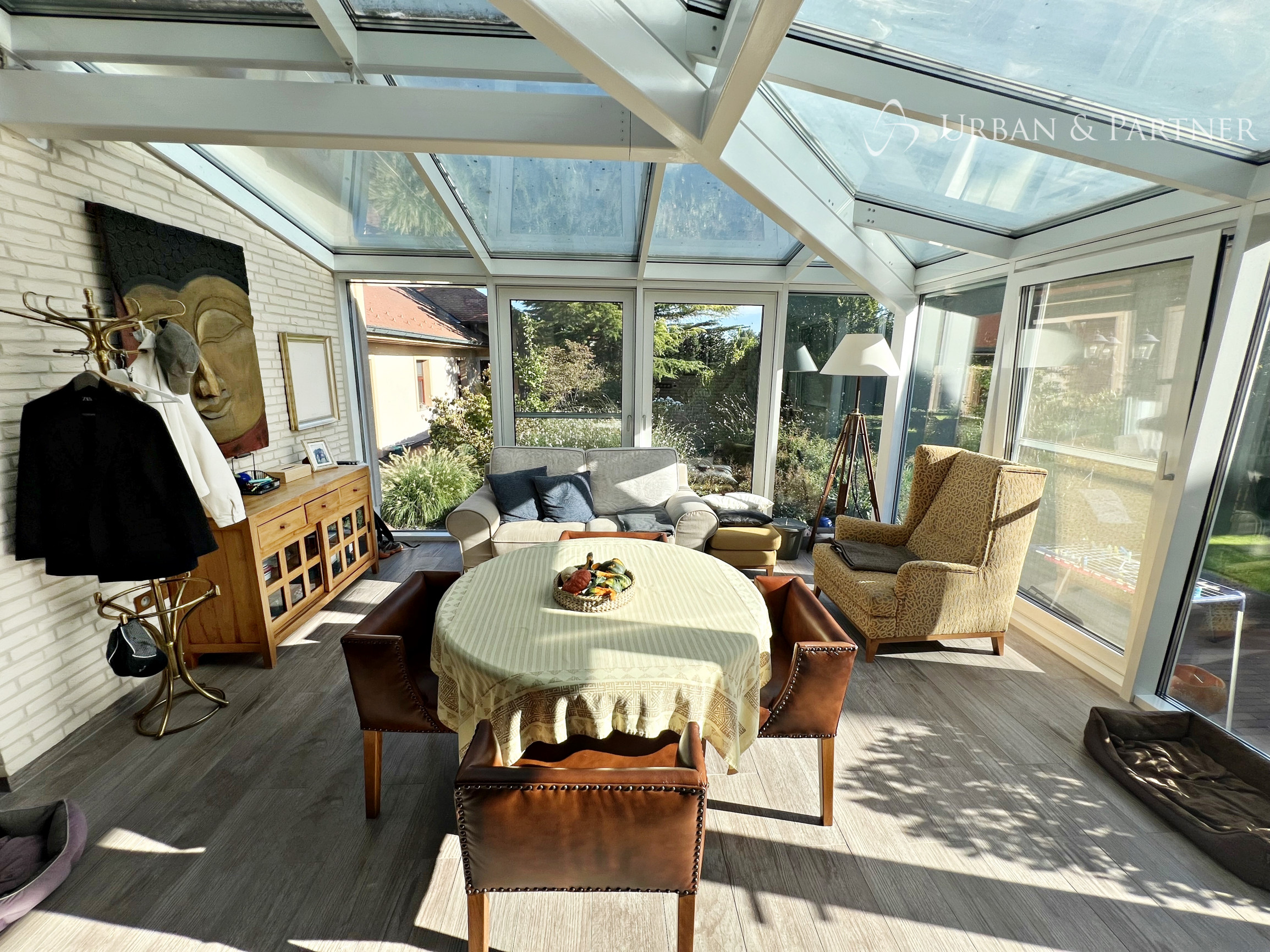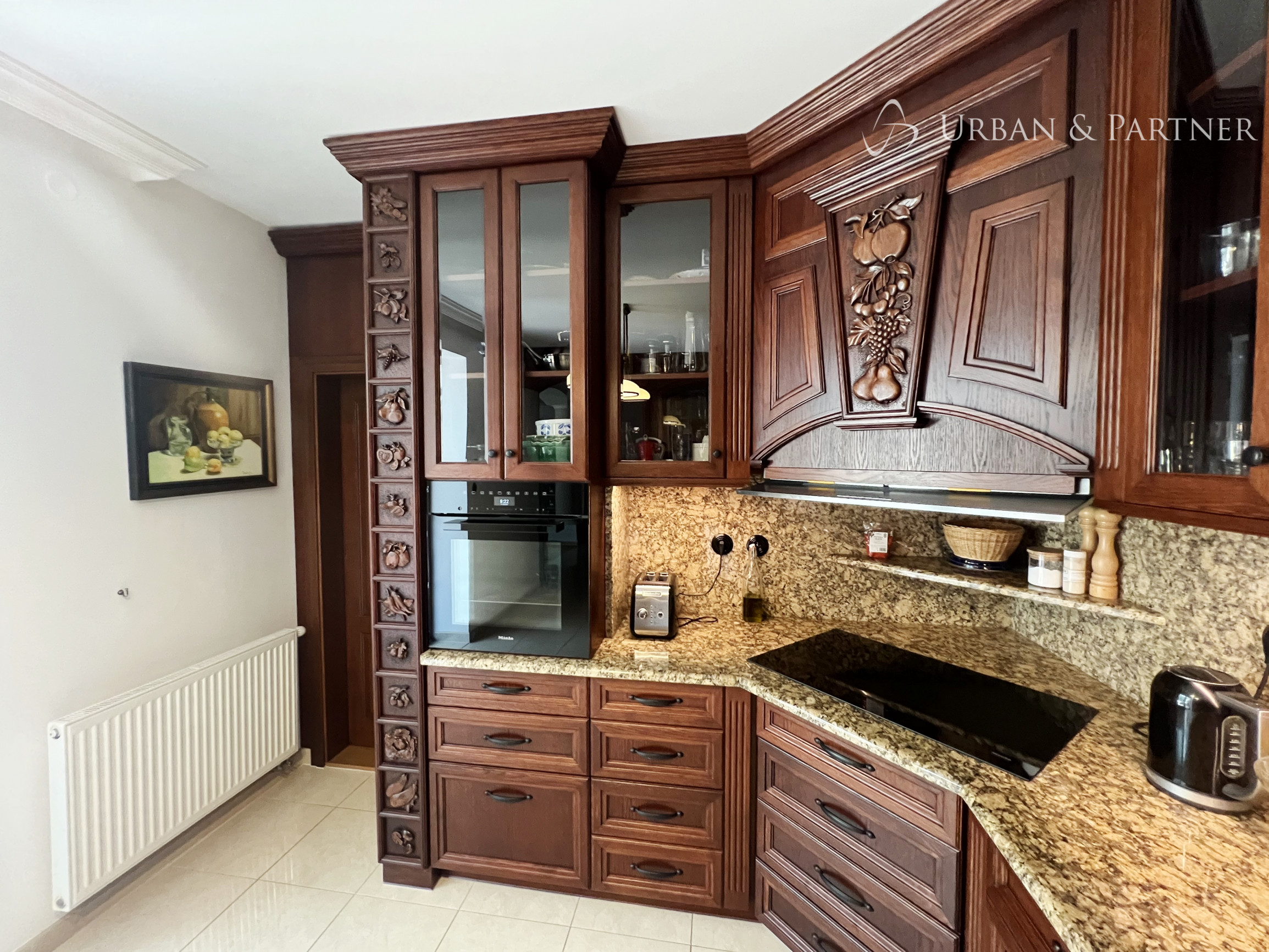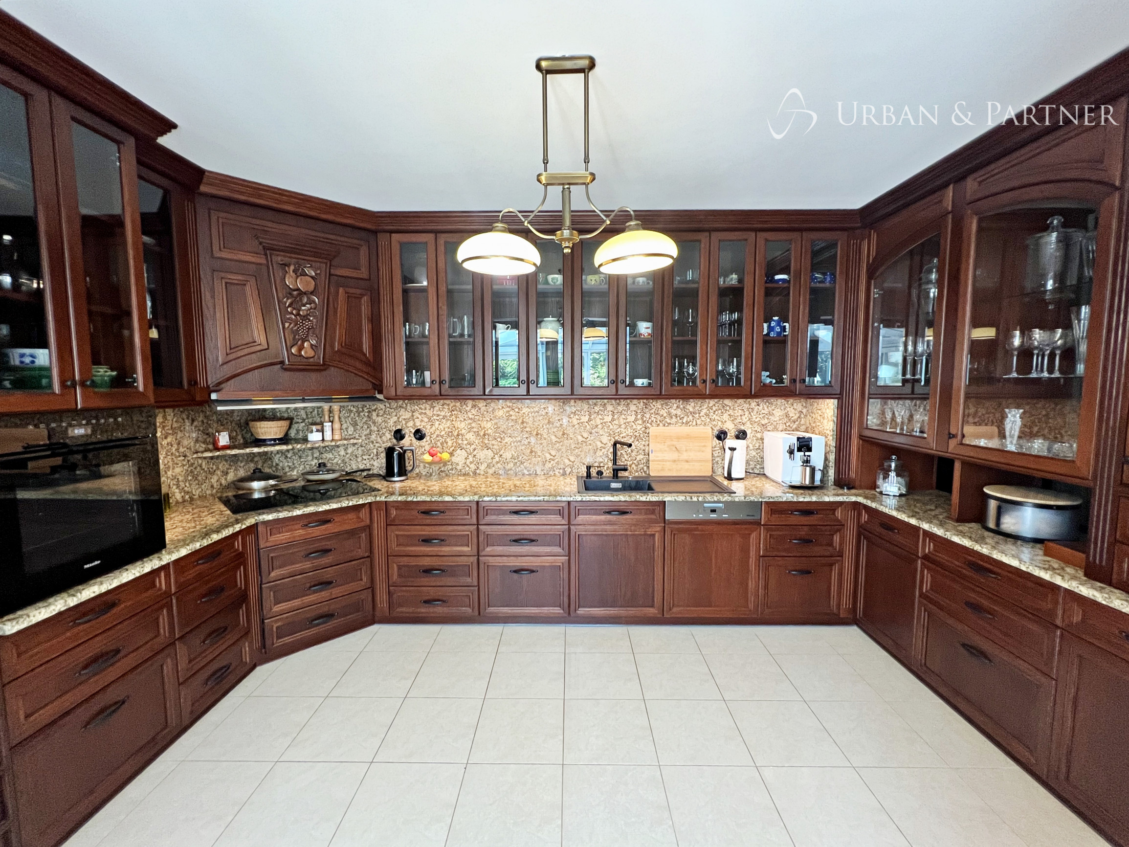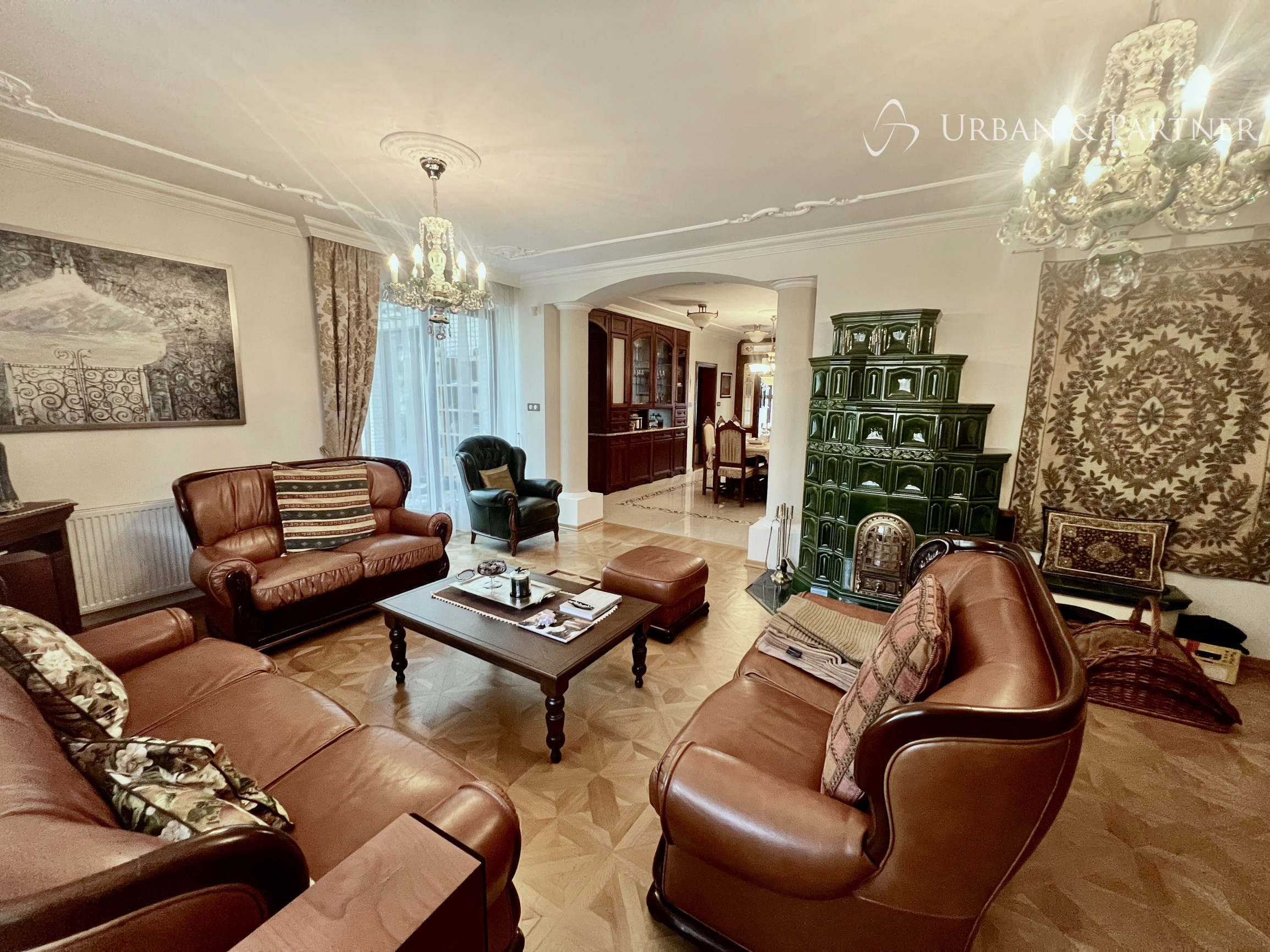 Štýlový 6-izbový rodinný dom v rustikálnom duchu, s nábytkom z masívneho dreva vyrobeným na mieru, dominantnou kachľovou pecou v obývačke a zimnou záhradou s výhľadom do zelene. Dispozícia je praktická a komfortná: 5 spální (3 so šatníkmi), 2 kúpeľne, samostatná toaleta a technické zázemie. Kuchyňa po kompletnej rekonštrukcii je vybavená špičkovými spotrebičmi MIELE.