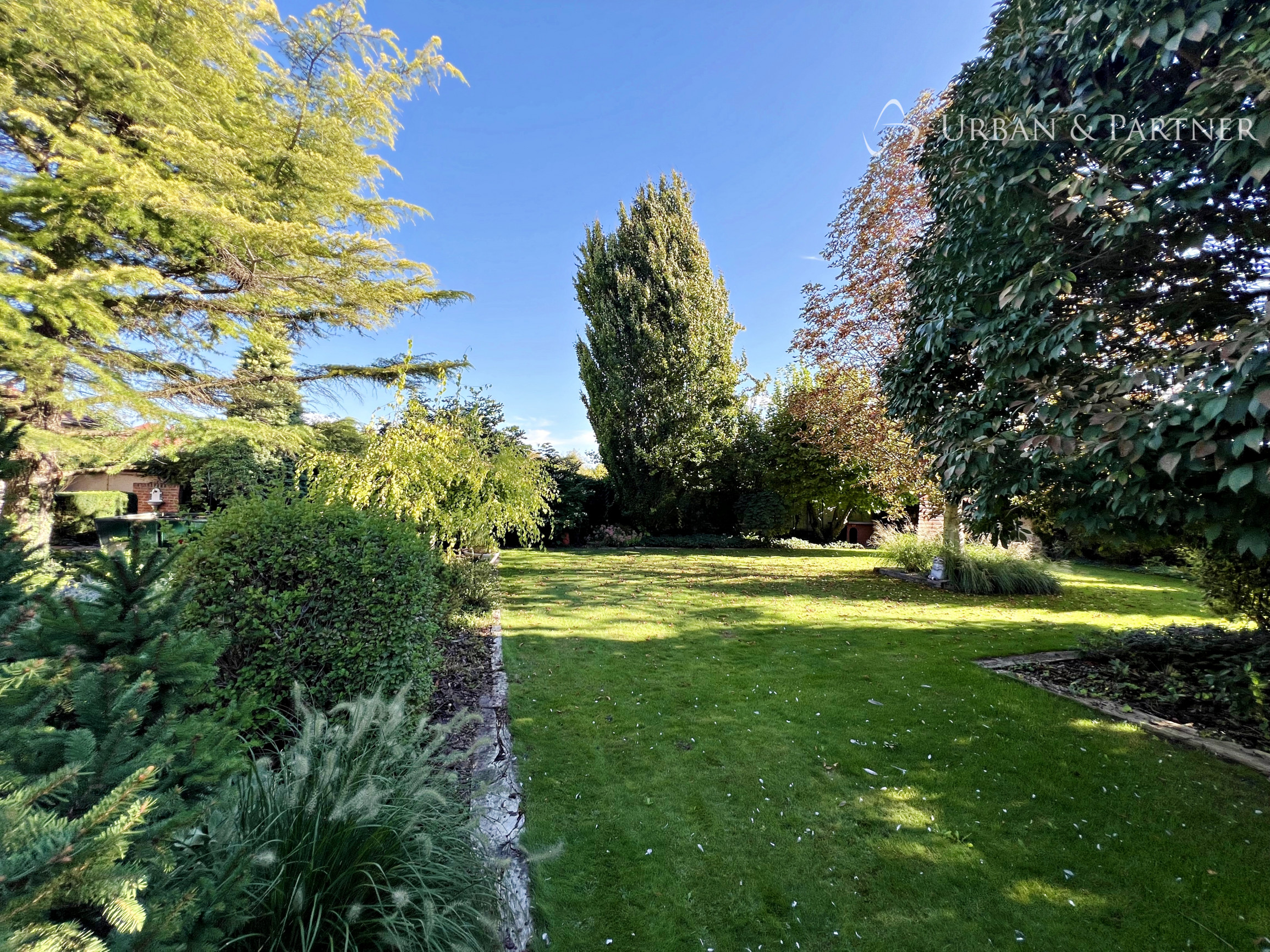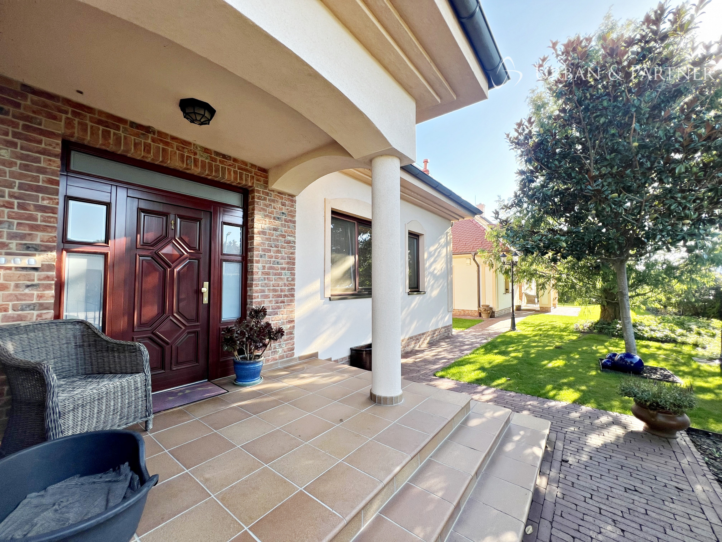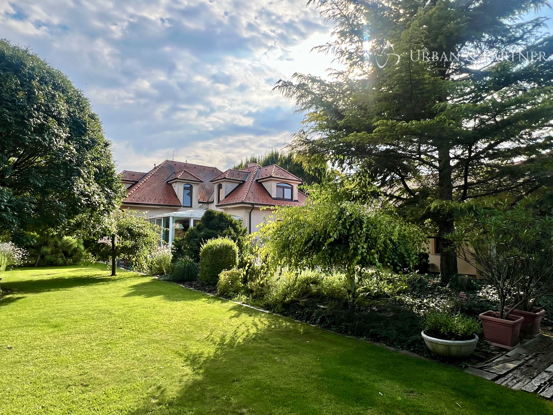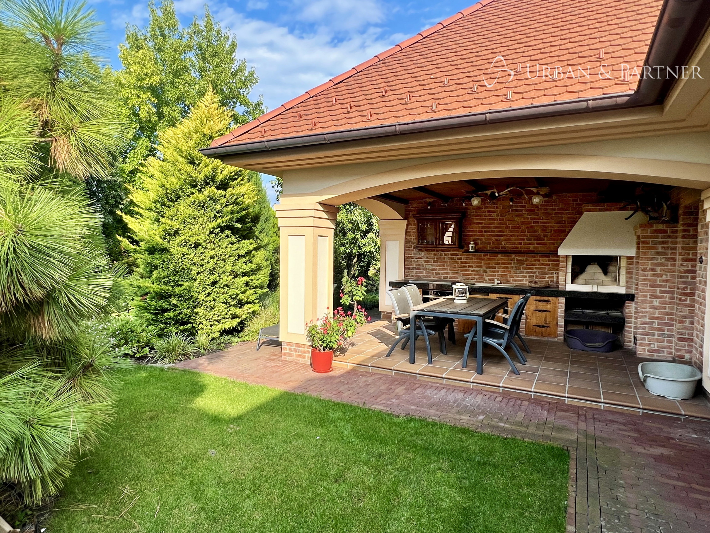 Pozemok je vkusne upravený, plný vzrastlej zelene s klasickými aj exotickými stromami. Jej oázou relaxu a súkromia v tichom prostredí.