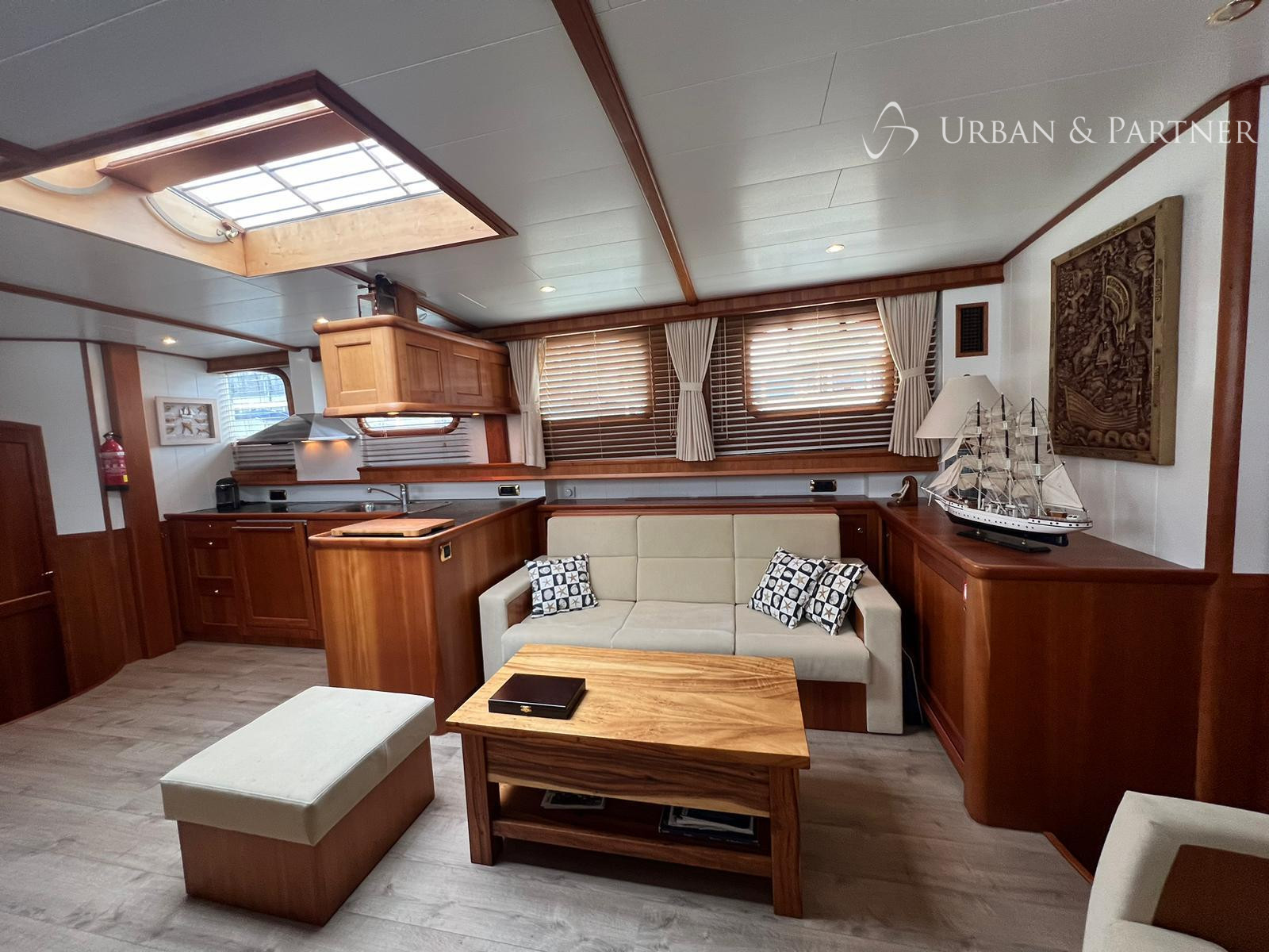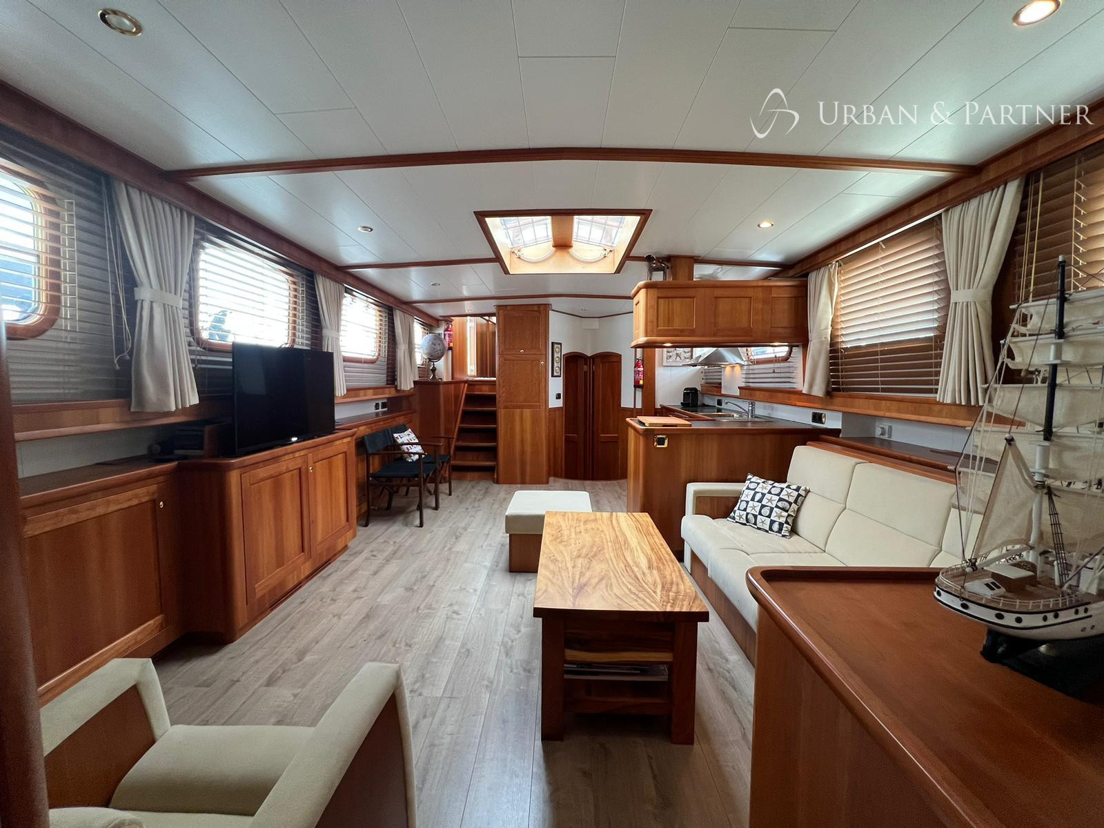 Pre relaxáciu má loď veľkú krytú zadnú palubu, krásne navrhnutý interiér a dostatok priestoru s výškou 205 cm v kormidelni a 217 cm v salóne. K dispozícii sú 4 kajuty.