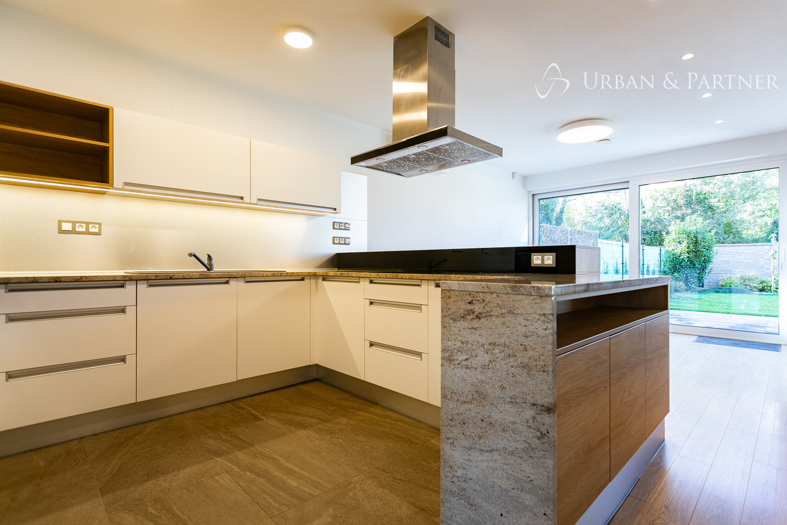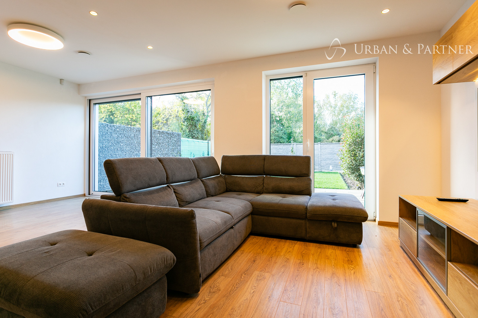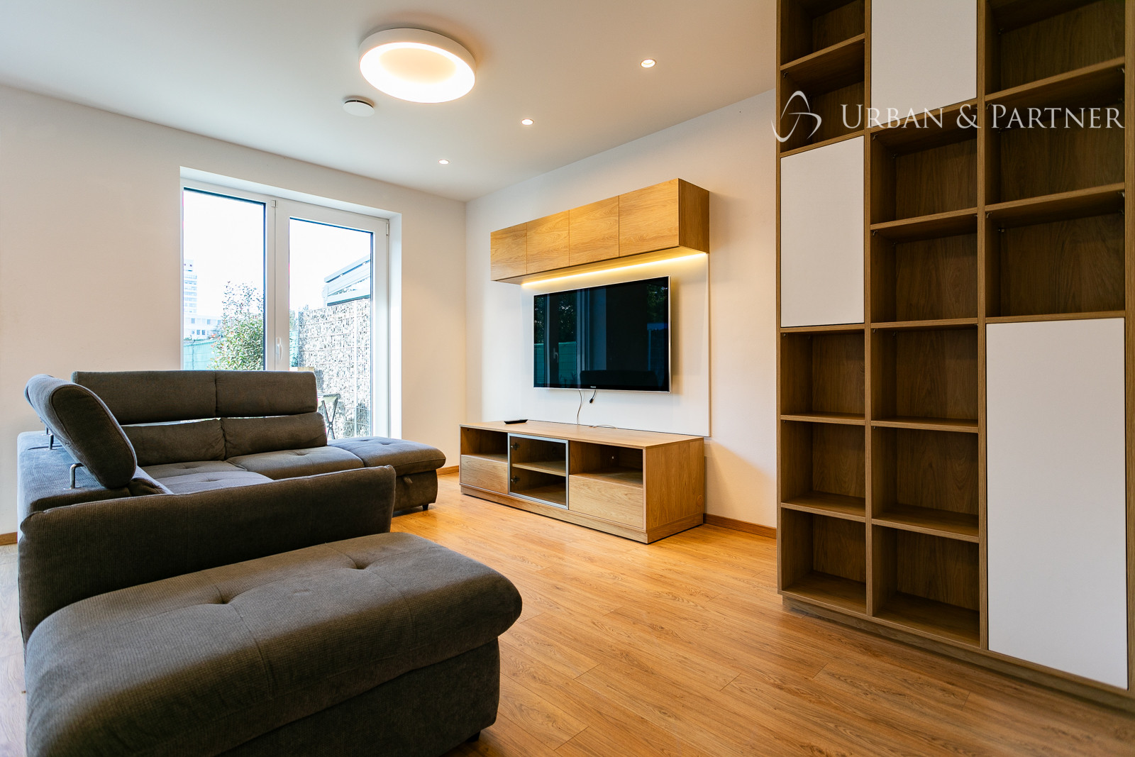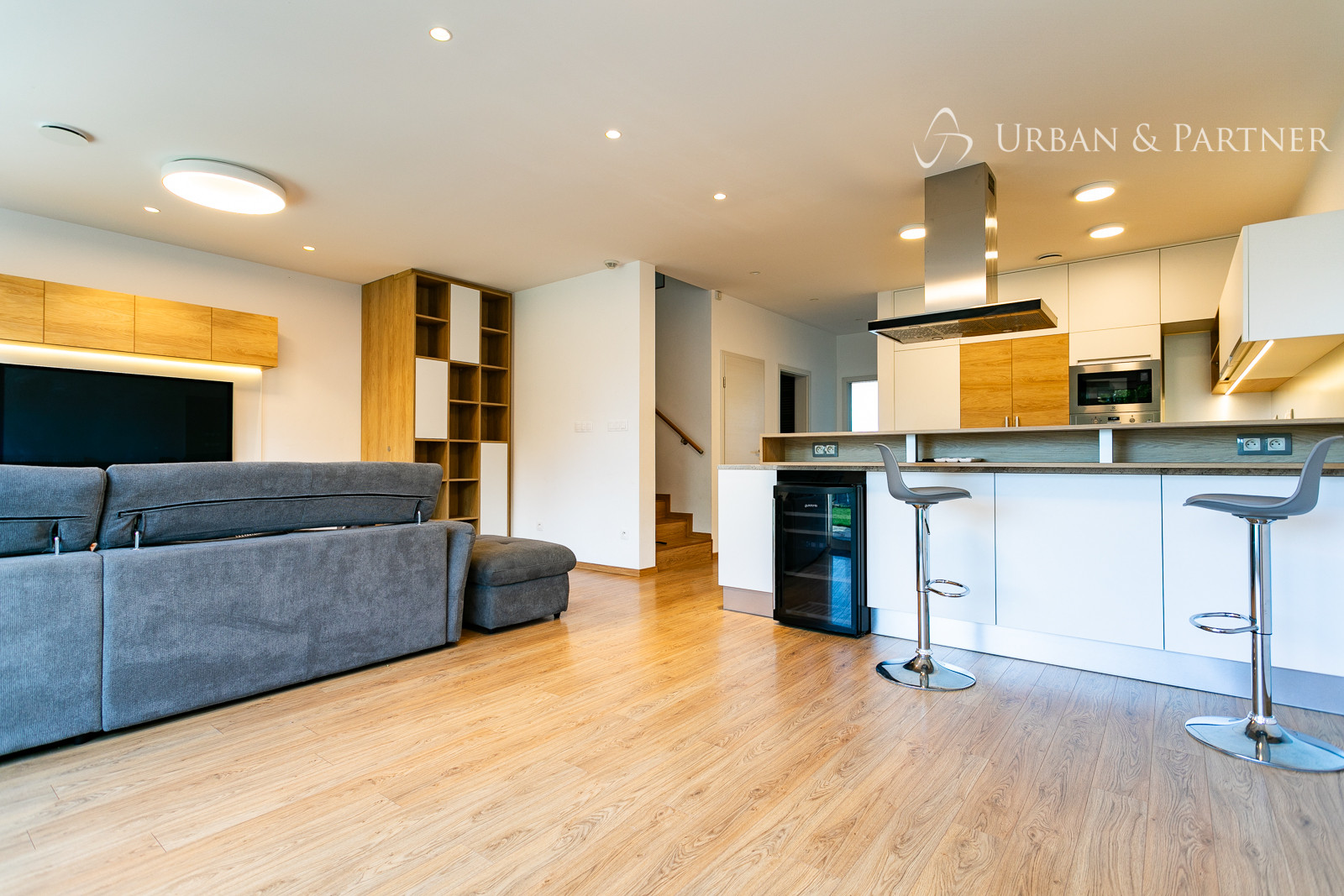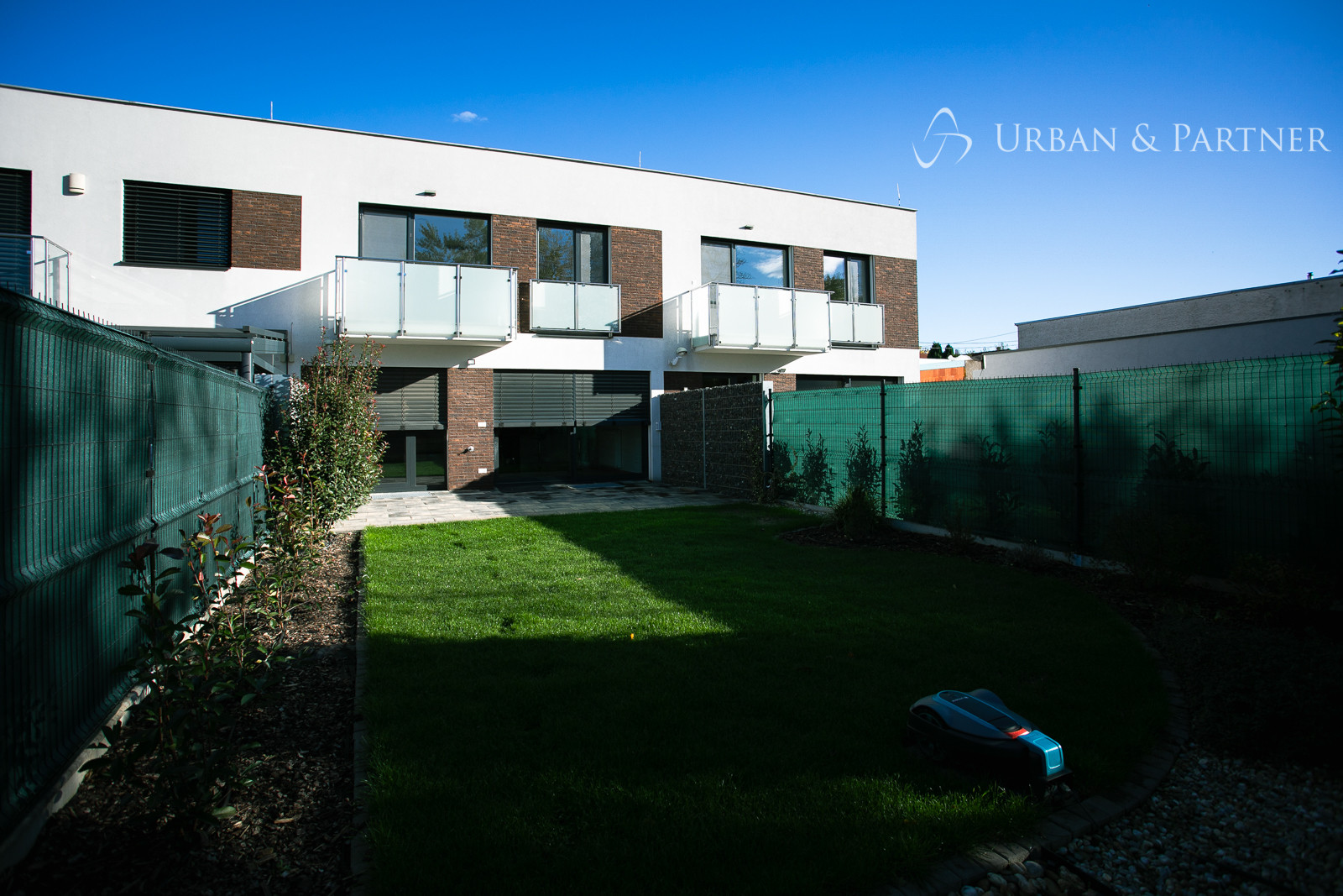 Realitná kancelária URBAN & PARTNER Vám ponúka na prenájom NOVOSTAVBU rodinného domu na Tučkovej ulici (E) v Bratislave v mestskej časti Ružinov. Dom je vhodný ako na bývanie tak na kancelárie. Je postavený v radovej zástavbe v tichej slepej uličke. Má dve nadzemné podlažia a suterén. V suteréne sú 4 miestnosti ( a technická miestnosť....) s fitness podlahou. Na 1NP sa nachádza zádverie, šatník, toaleta so sprchovým kútom, samostatná miestnosť a jedna veľká miestnosť s kuchynskou linkou. Tá je vybavená kompletne elektrospotrebičmi. Terasa je o výmere 20m2. Podlaha v miestnostiach je laminátová. Na chodbe a v toalete je keramická dlažba. Na 2NP sa nachádzajú 3 miestnosti, samostatná toaleta a kúpeľňa s vaňou. Kúrenie v dome je plynové (plynový kotol zn. Viessmann) kombinácia podlahového s radiátormi. Každá miestnosť na prízemí a poschodí je klimatizovaná a na oknách sú vonkajšie žalúzie. Dom je napojený na kamerový a zabezpečovací ochranný systém.
