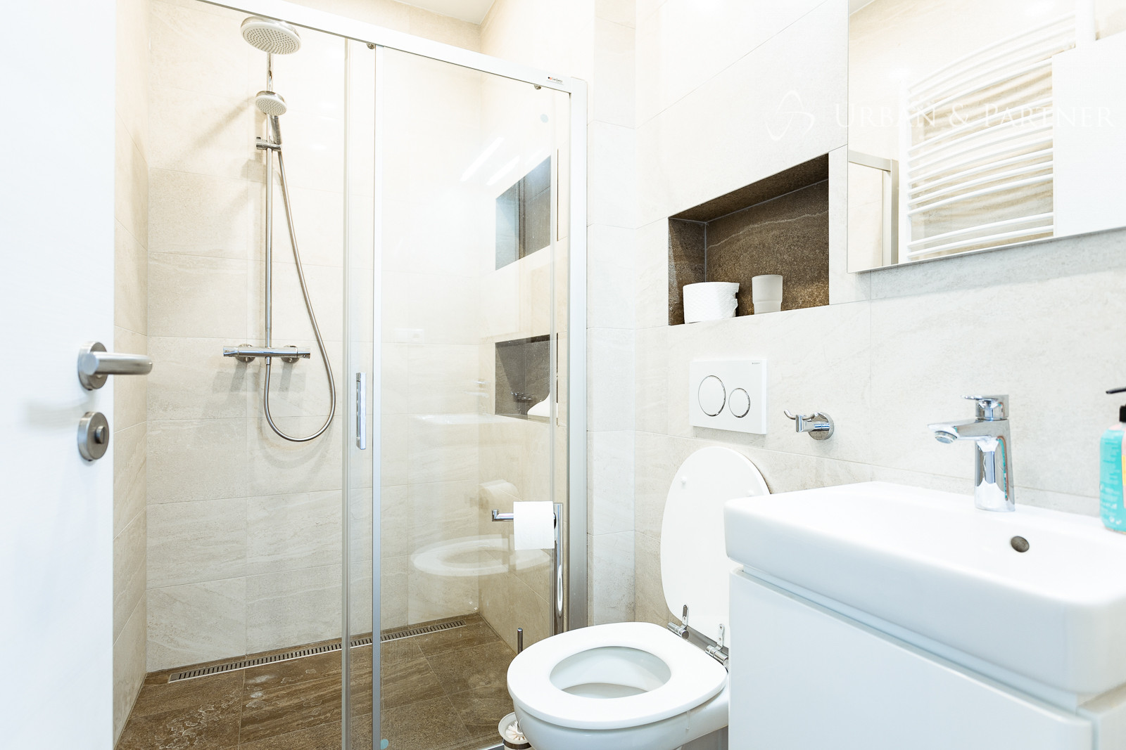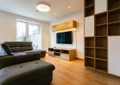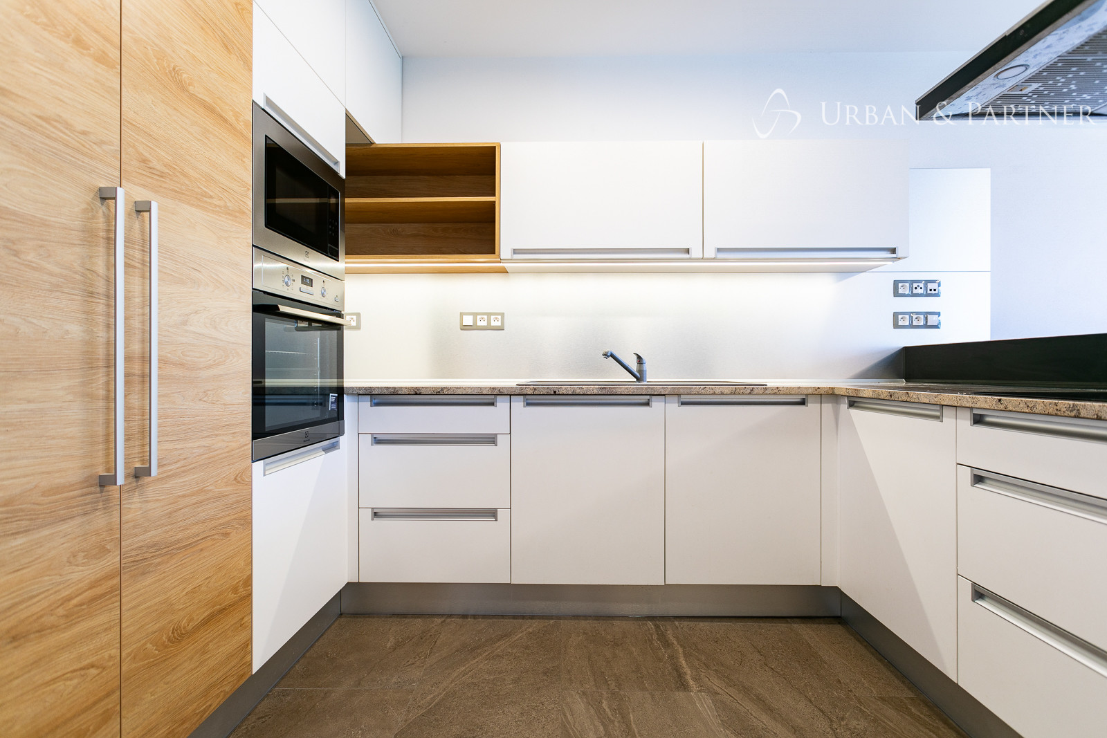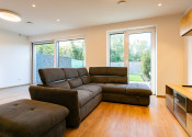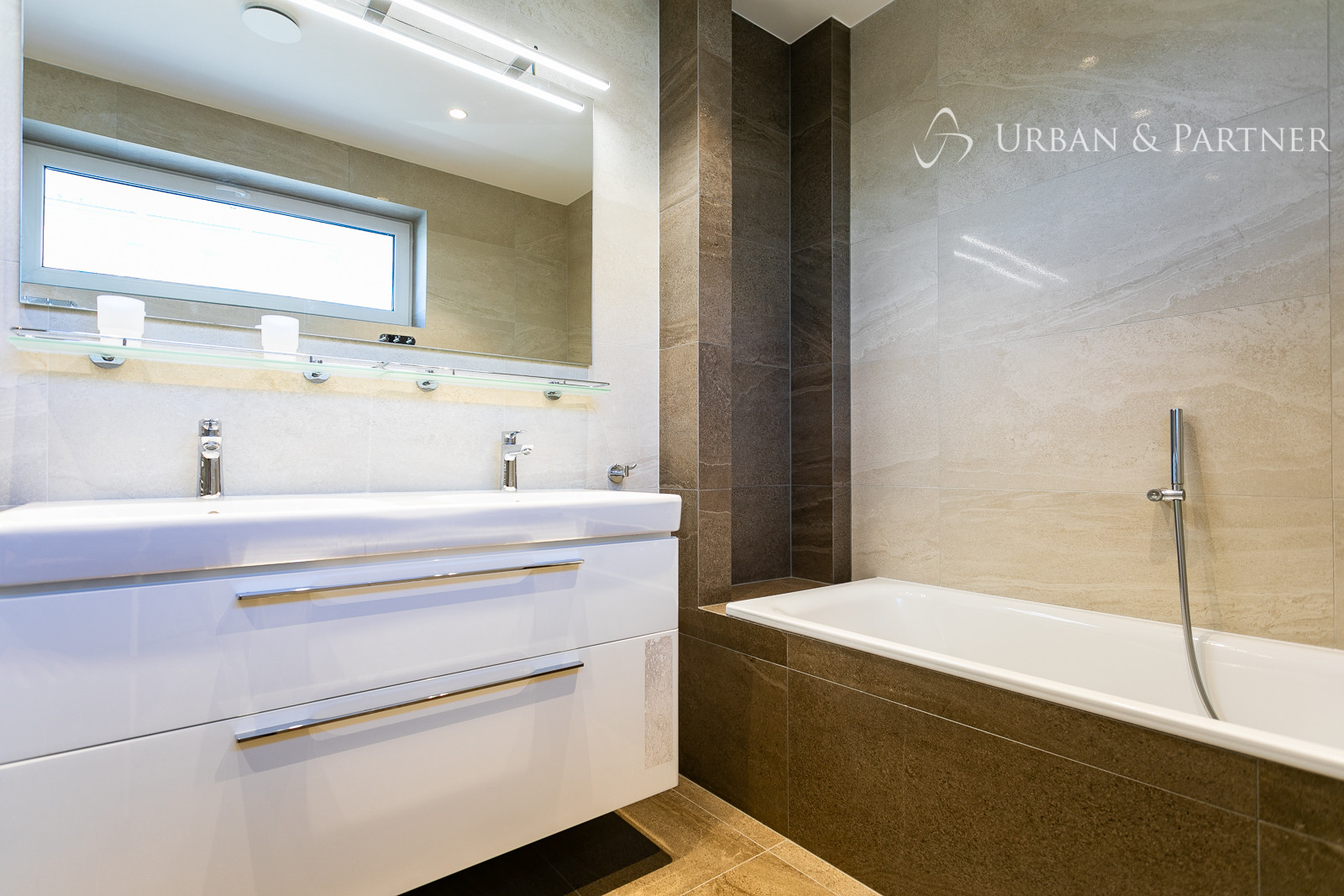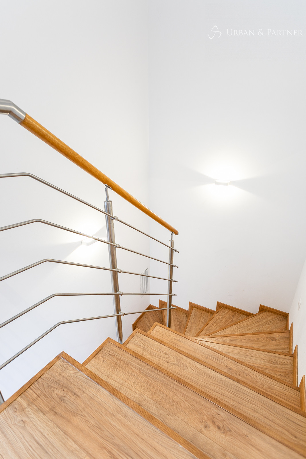 Realitná kancelária URBAN & PARTNER Vám ponúka na prenájom NOVOSTAVBU rodinného domu na Tučkovej ulici (E) v Bratislave v mestskej časti Ružinov. Dom je vhodný ako na bývanie tak na kancelárie. Je postavený v radovej zástavbe v tichej slepej uličke. Má dve nadzemné podlažia a suterén. V suteréne sú 4 miestnosti ( a technická miestnosť....) s fitness podlahou. Na 1NP sa nachádza zádverie, šatník, toaleta so sprchovým kútom, samostatná miestnosť a jedna veľká miestnosť s kuchynskou linkou. Tá je vybavená kompletne elektrospotrebičmi. Terasa je o výmere 20m2. Podlaha v miestnostiach je laminátová. Na chodbe a v toalete je keramická dlažba. Na 2NP sa nachádzajú 3 miestnosti, samostatná toaleta a kúpeľňa s vaňou. Kúrenie v dome je plynové (plynový kotol zn. Viessmann) kombinácia podlahového s radiátormi. Každá miestnosť na prízemí a poschodí je klimatizovaná a na oknách sú vonkajšie žalúzie. Dom je napojený na kamerový a zabezpečovací ochranný systém.