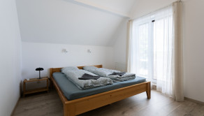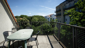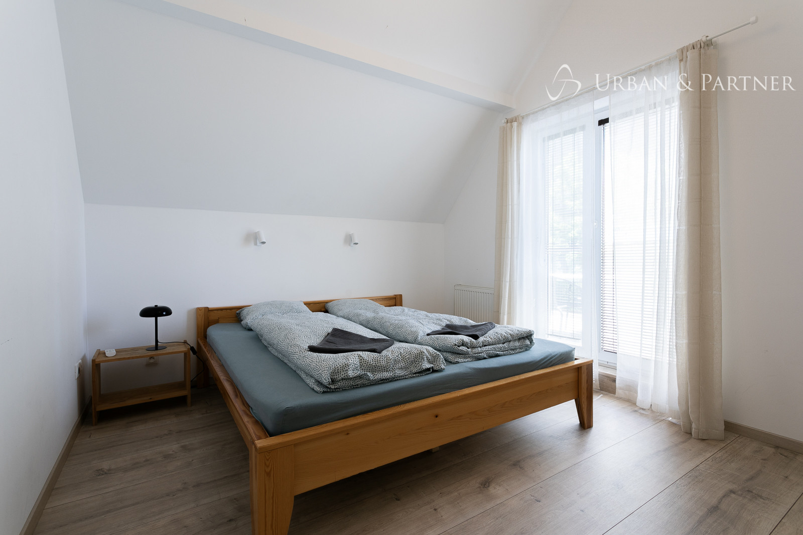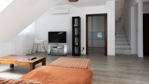 - na poschodí spálňa so zabudovaným šatníkom a s výstupom na terasu, ktorá je orientovaná do zeleného dvora a aj do ulice (možnosť druhej terasy na streche).