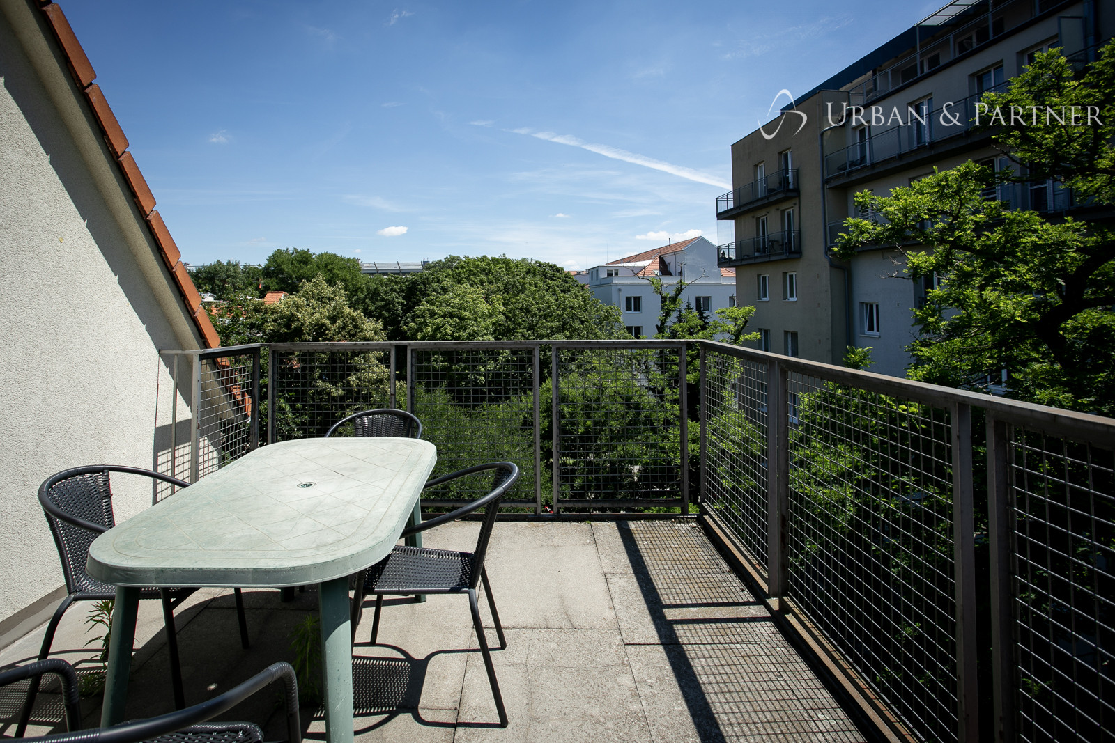 Byt sa nachádza na 3 poschodí zo 4 v nadstavbe z roku 2005 a má celkovú výmeru 86,51 m2 plus malý balkón o výmere 1,88 m2 a terasu o výmere 13,69 m2.