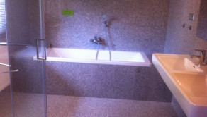 - znížené prízemie s oknami tvoria dve samostatné izby a každá izba má svoju kúpeľňu a WC, ďalej práčovňa s pračkou a sušičkou.