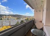 Dispozíciu bytu tvorí vstupná chodba so vstupom do samostatného WC, samostatnej kúpeľne, ďalej izby a kuchyne, Z izby je vstup na priestranný balkón s pekný výhľadom na lesy a okolie.