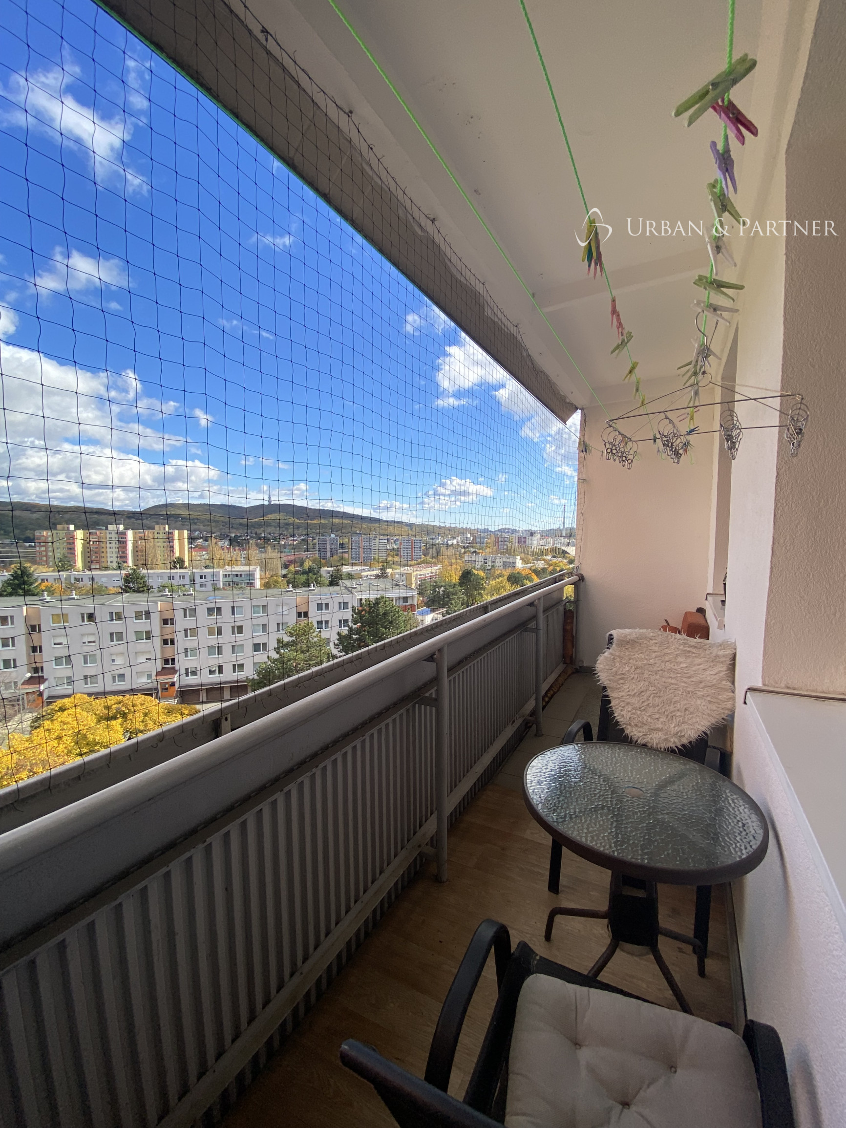 Byt sa nachádza na 8 poschodí z 8 v zateplenom bytovom dome a celková podlahová plocha bytu a balkóna je 37,88 m2, byt má plochu 30,56 m2 vrátane latkovej pivničnej kobky.