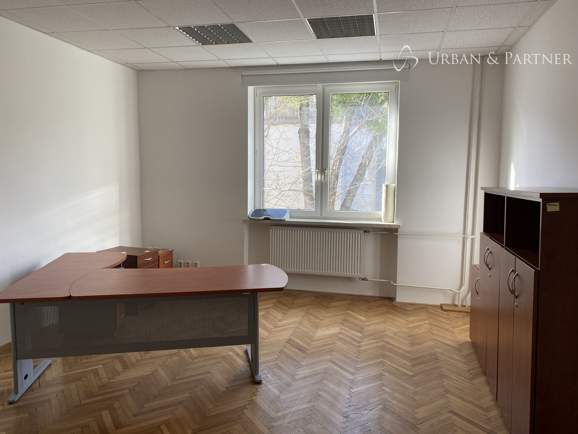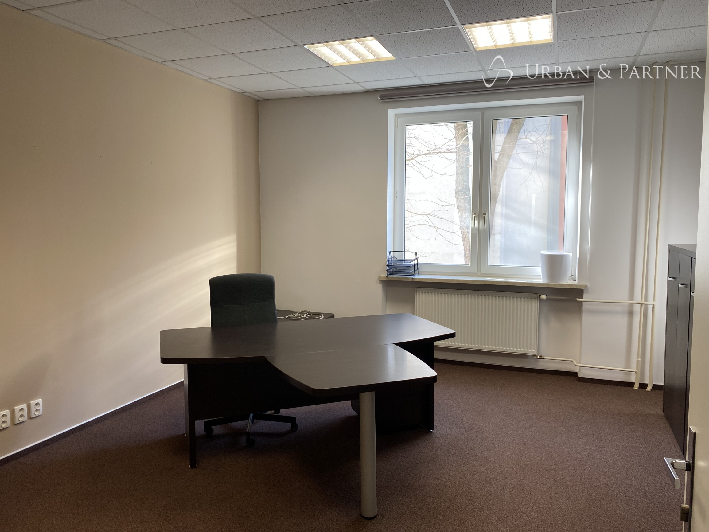 Kancelárske priestory sú zariadené kancelárskym nábytkom, ktorý je k dispozícii pre nájomcov (okrem stoličiek).