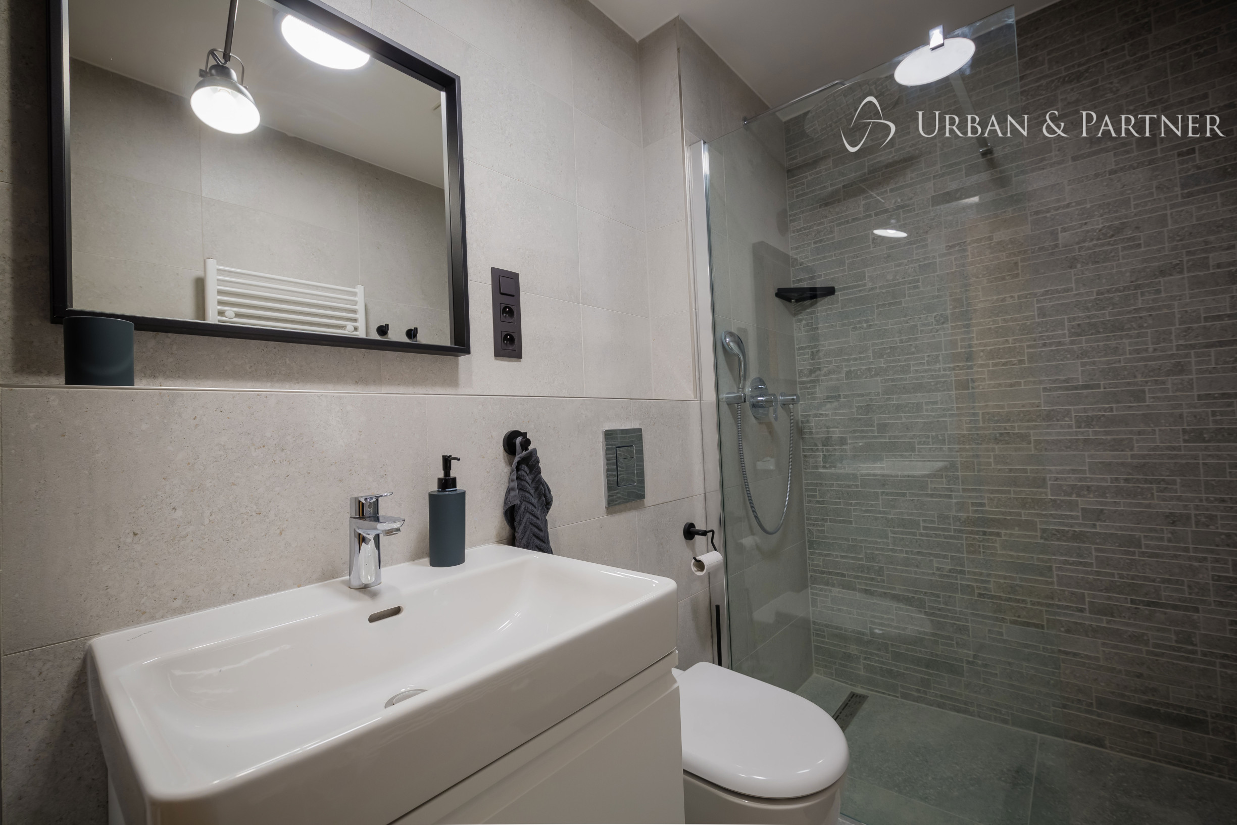 Byt je dokonale dizajnovo zariadený architektom a poskytuje absolútne pohodlie pre konfortné bývanie. Benefitom bytu je klimatizácia, kvalitné hliníkové okná, vonkajšie elektrické žalúzie, kompletné vybavenie všetkými spotrebičmi (zabudovaná chladnička s mrazničkou, umývačka riadu, varná doska, pračka, televízor).