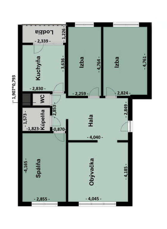 Byt ponúka výborne riešený pôdorys – žiadne priechodné izby, každá miestnosť má samostatný vstup: